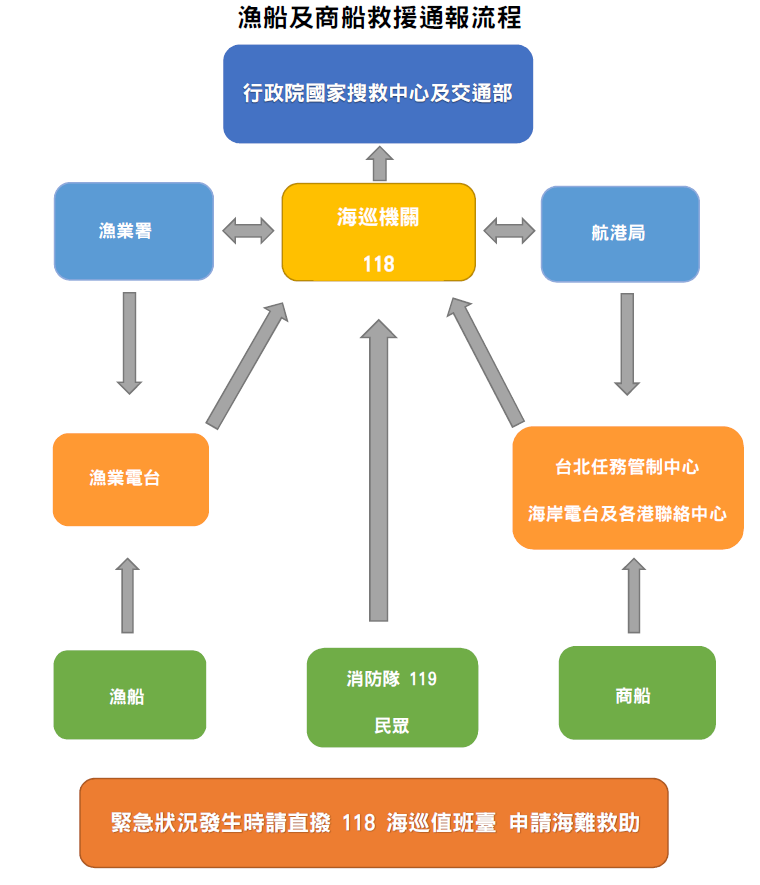 10、遊艇需備有手機等通訊設備,瞭解海域的應急聯繫方式等。請見下圖有說明救援流程。